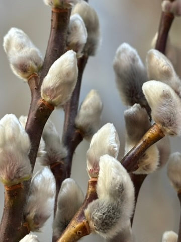 We have lovely branches of pussy willow. Eighteen stems, 3-4' tall. Buy it, enjoy it in the vase and then grow it on in your own garden! The catkins are fuzzy. Even in full bloom, pussy willow flowers do not look like flowers at all. No petals or showy colors, no fragrance. They are named for cats, in this case for their tails from the old Dutch word for kitten or Katteken. Pick up is at our farm in Stuyvesant. Please include your mobile #/email in the note section so we can coordinate a pick up time.